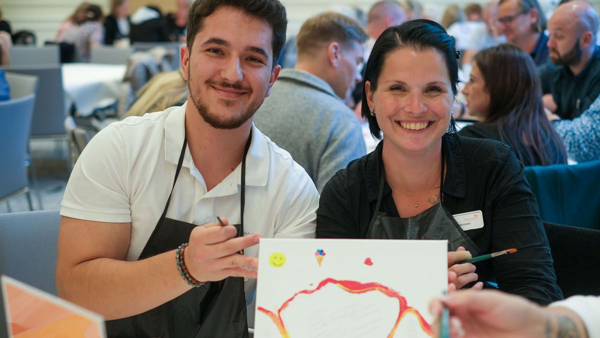 "Wir versprühen Lebensfreude" so lautete das Motto unseres alljährlichen Führungsforums in 2025 mit den Leitungsteams aller ProCurand Standorte. Gemeinsam wurde das Motto in insgesamt 40 kleinen Kunstwerken - mit viel Spaß - zum Leben erweckt. Mit dieser Aktion gaben wir den Startschuss für unser neuestes Projekt: ProCurand Lebensfreude können nun alle schnuppern! Feine Noten von Blutorange, Grüner Apfel, Minze und anderen empfangen künftig alle unsere Besucher*innen in den Eingangsbereichen unserer Residenzen. Es ist ein frischer, leichter Duft geworden, der gemeinsam mit der Parfümerie Frau Tonis aus Berlin entwickelt wurde. Diese Duftmischung passt perfekt zu uns und unserer Lebensfreude.